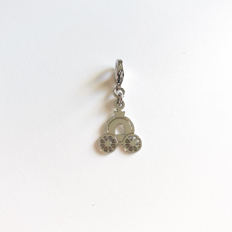 Ciondolo in ottone galvanizzato oro o rodio con moschettone da agganciare al bracciale componibile. Nichel free.