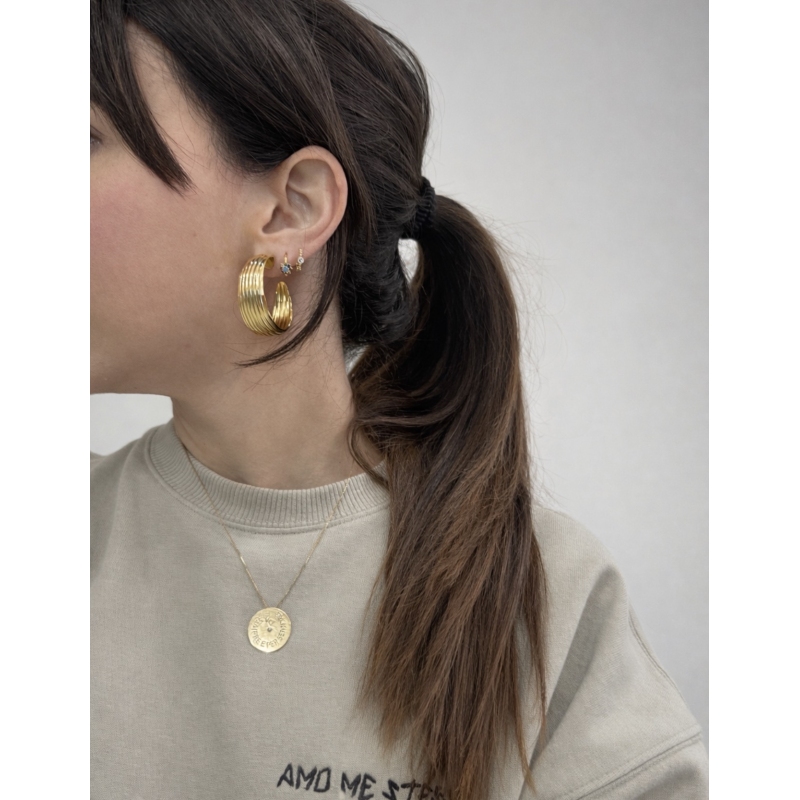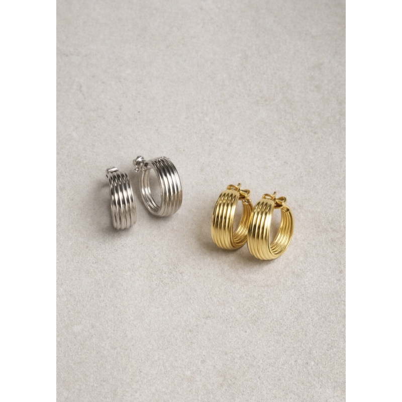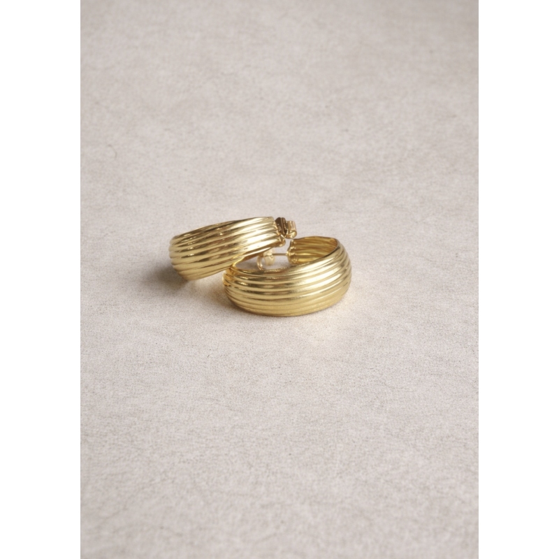 Orecchini cerchi rigati in ottone galvanizzato in oro o rodio.