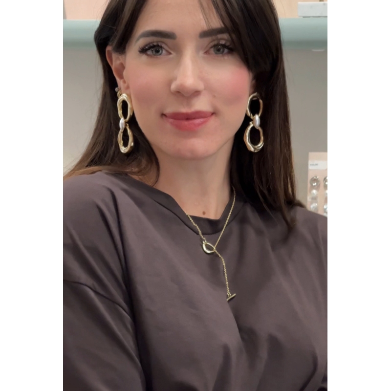 Orecchini con elementi ovali ondulati e navette con perla.