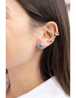 Orecchini a lobo con swarovski colorato e catena in ottone galvanizzato saldata attorno. Chiusura con farfallina. Nichel free.