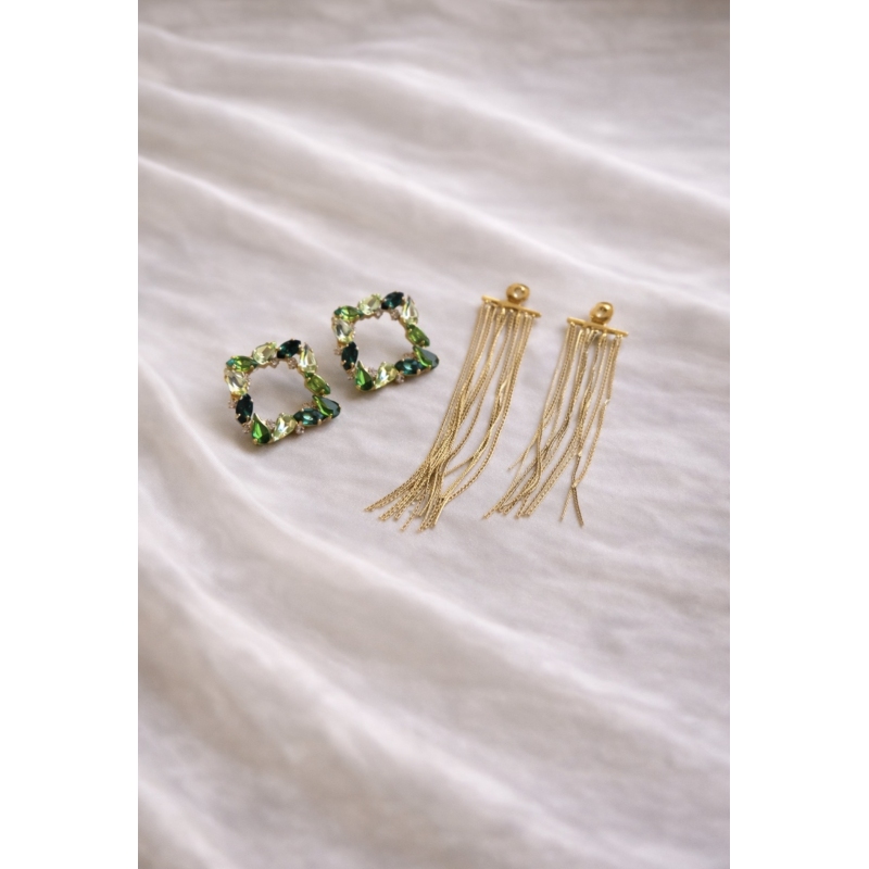 La vera particolarità? Sono orecchini 2 in 1: puoi indossarli con le frange per un look più scenografico e serale, oppure senza frange per uno stile più minimal e quotidiano.